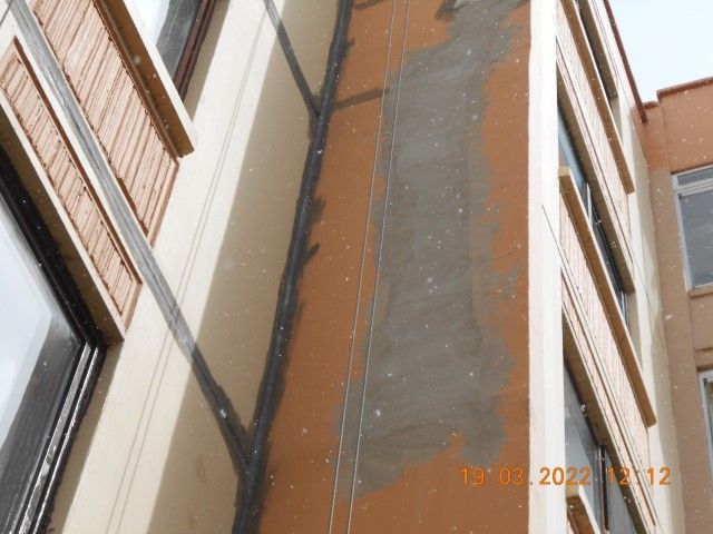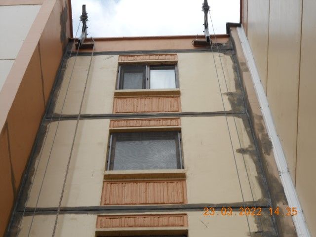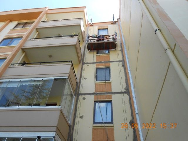 Sitemizde bulunan 10 bloğun dış cephelerindeki yatay ve dikey kat birleşme çizgilerinde bulunan izolasyon malzemelerinin eskimesi, özelliğini kaybetmesi, çatlaması vs. nedenlerle dairelere yağmur suyu girmektedir. Bu nedenle belirlenen yatay ve dikey birleşme yerleri ve çatı birleşme bölgeleri ; temizlendikten sonra, bu yerler dayson marka silikonla doldurulup, üzerine weber marka su izolasyon yalıtım malzemesi sürüldükten sonra, jotun marka boya ile boyanmaktadır.